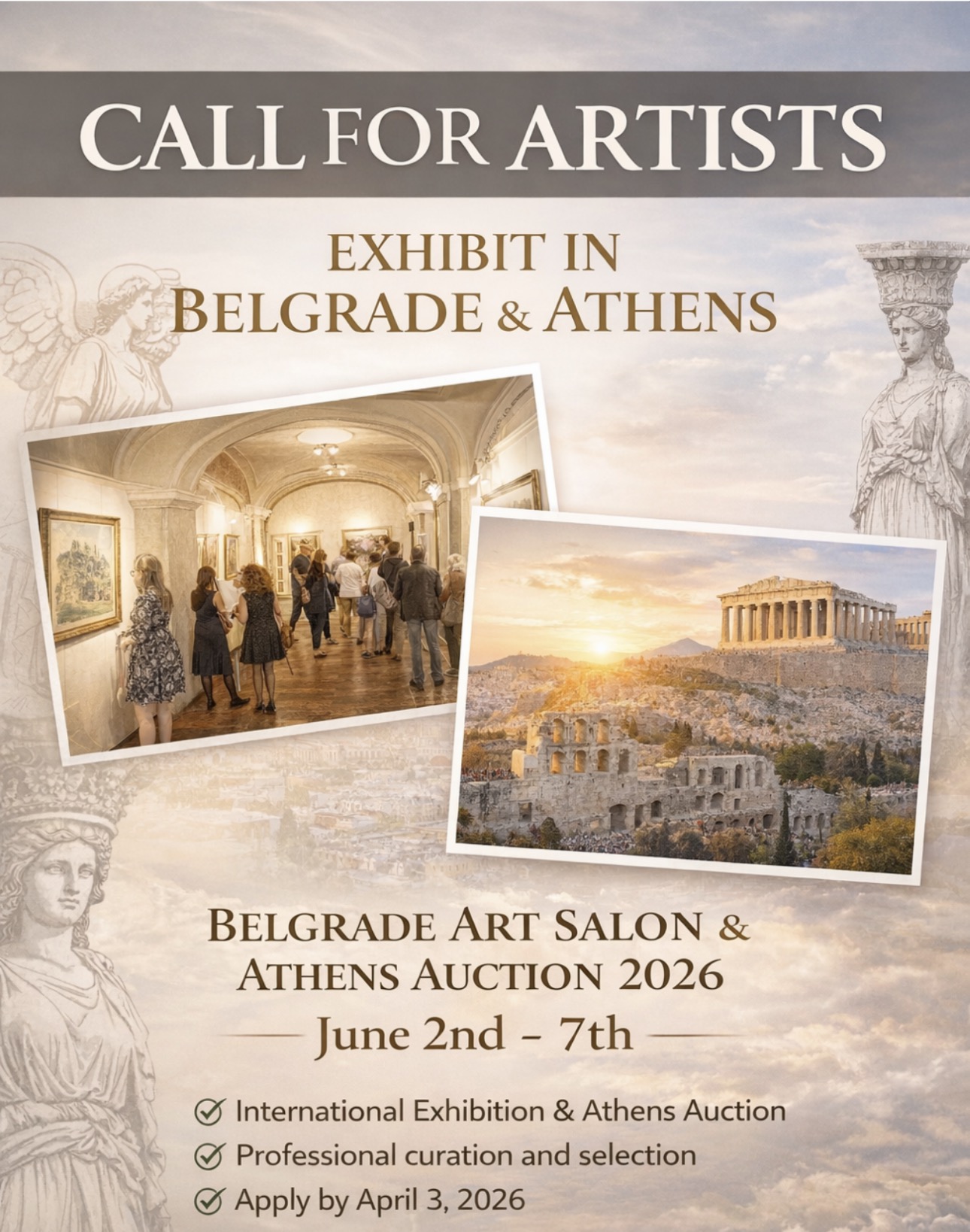 We are pleased to invite you again to take part in Belgrade Art Salon & Athens Auction 2026, an international exhibition that will take place in Belgrade (June 2–6, 2026) and conclude with the Athens Art Auction (June 7, 2026).